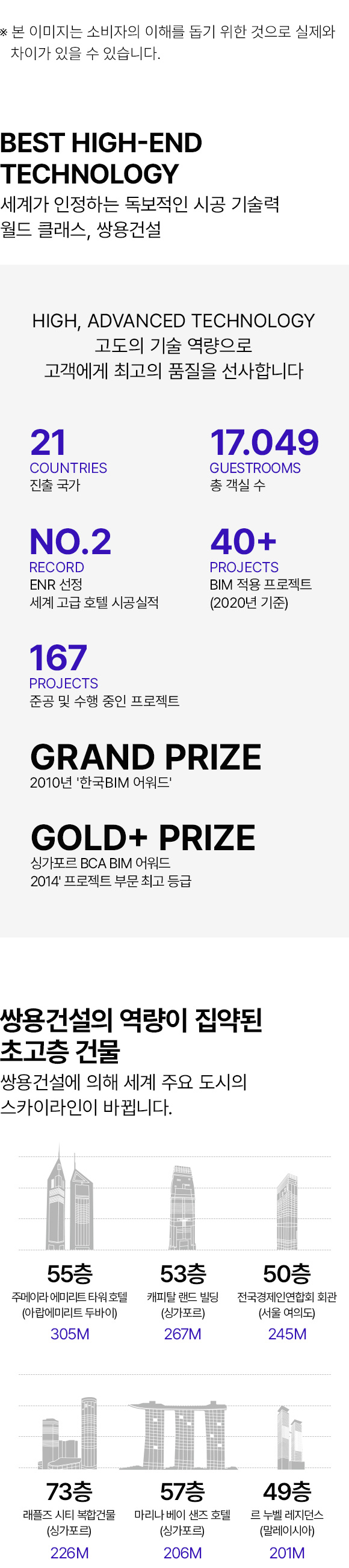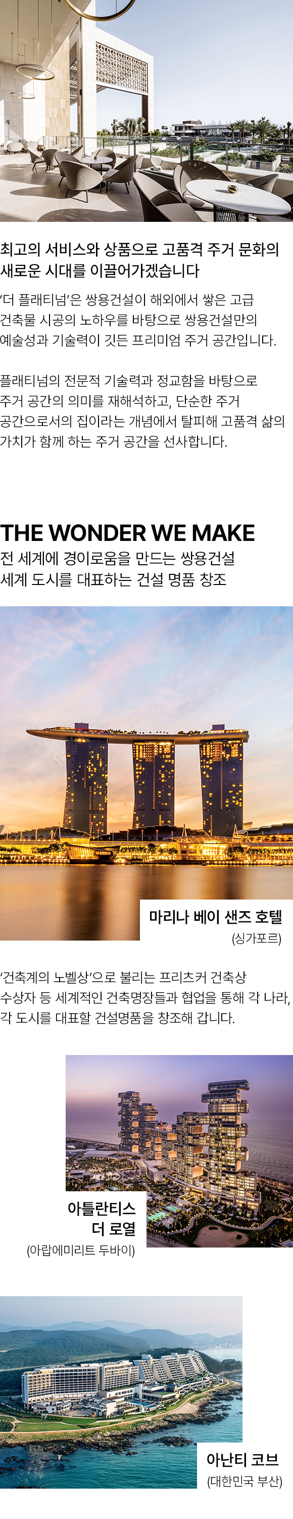 해외 고급건축 시공실적 1위!